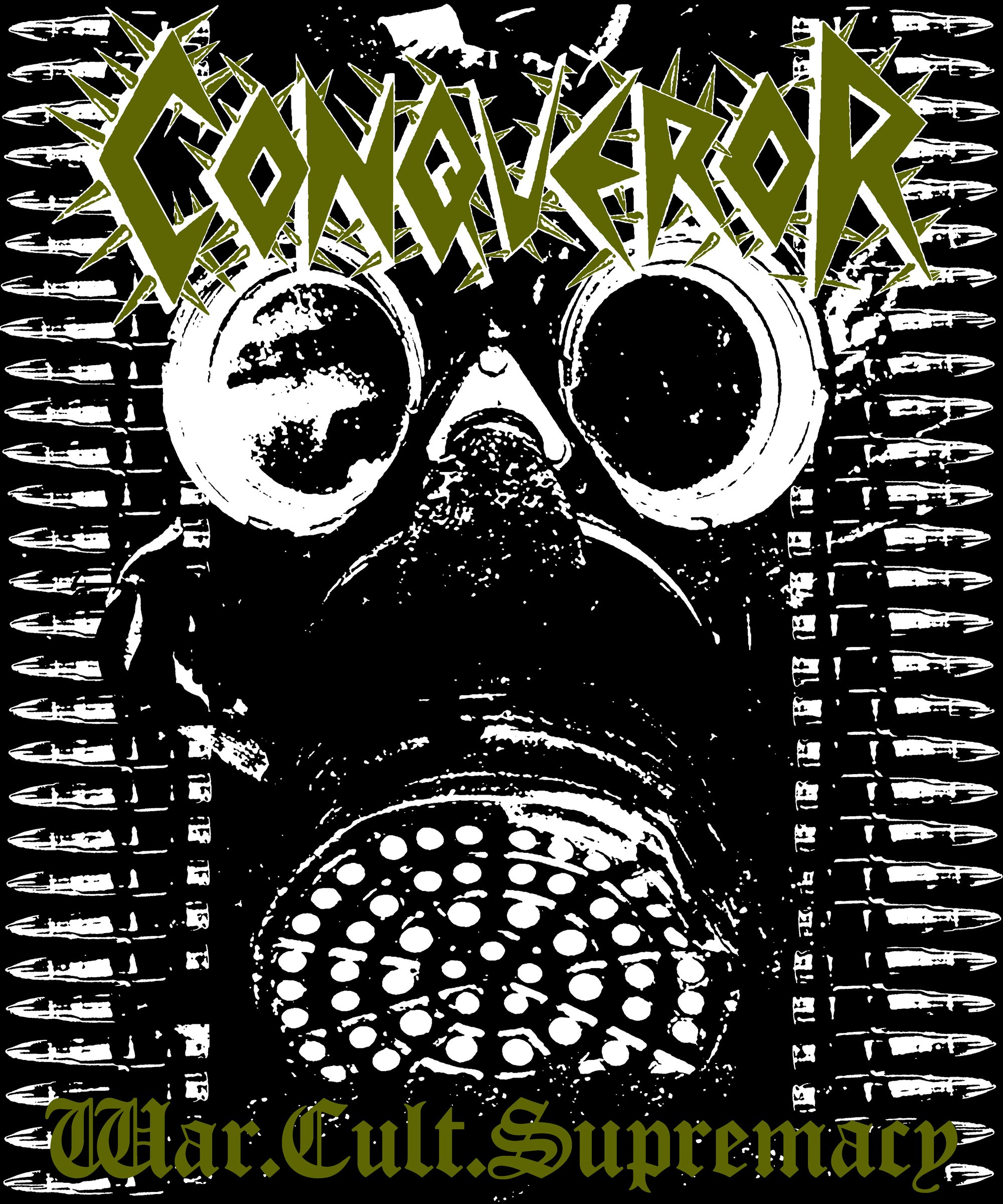Conqueror / W.C.S / Gas Mask Tank Top / White And Green Print. ( Due to printing process green colour may have slight variants not seen in photo)